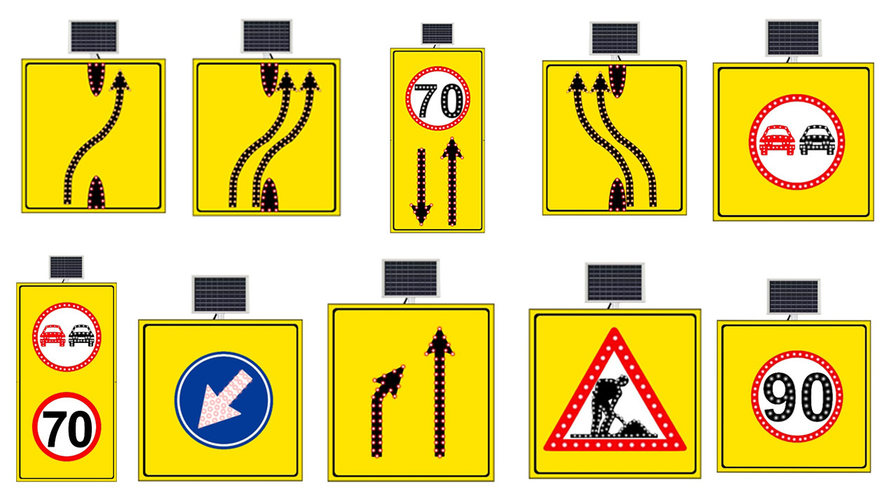 Поскольку знаки обслуживания дорог являются временными, мы изготавливаем знаки стандартного качества по мере необходимости для снижения затрат. Мы изготавливаем эти знаки из оцинкованной стали толщиной 1,2 мм и наносим светоотражающее покрытие стандартного качества. Мы можем изготавливать знаки различных размеров, соответствующих стандартам автомагистралей, в зависимости от формы знака. Для изделий, которые обычно используют солнечные панели мощностью 10 Вт и сухие аккумуляторы емкостью 7 А·ч, мы можем разработать и реализовать различные варианты дизайна в соответствии с вашими требованиями.